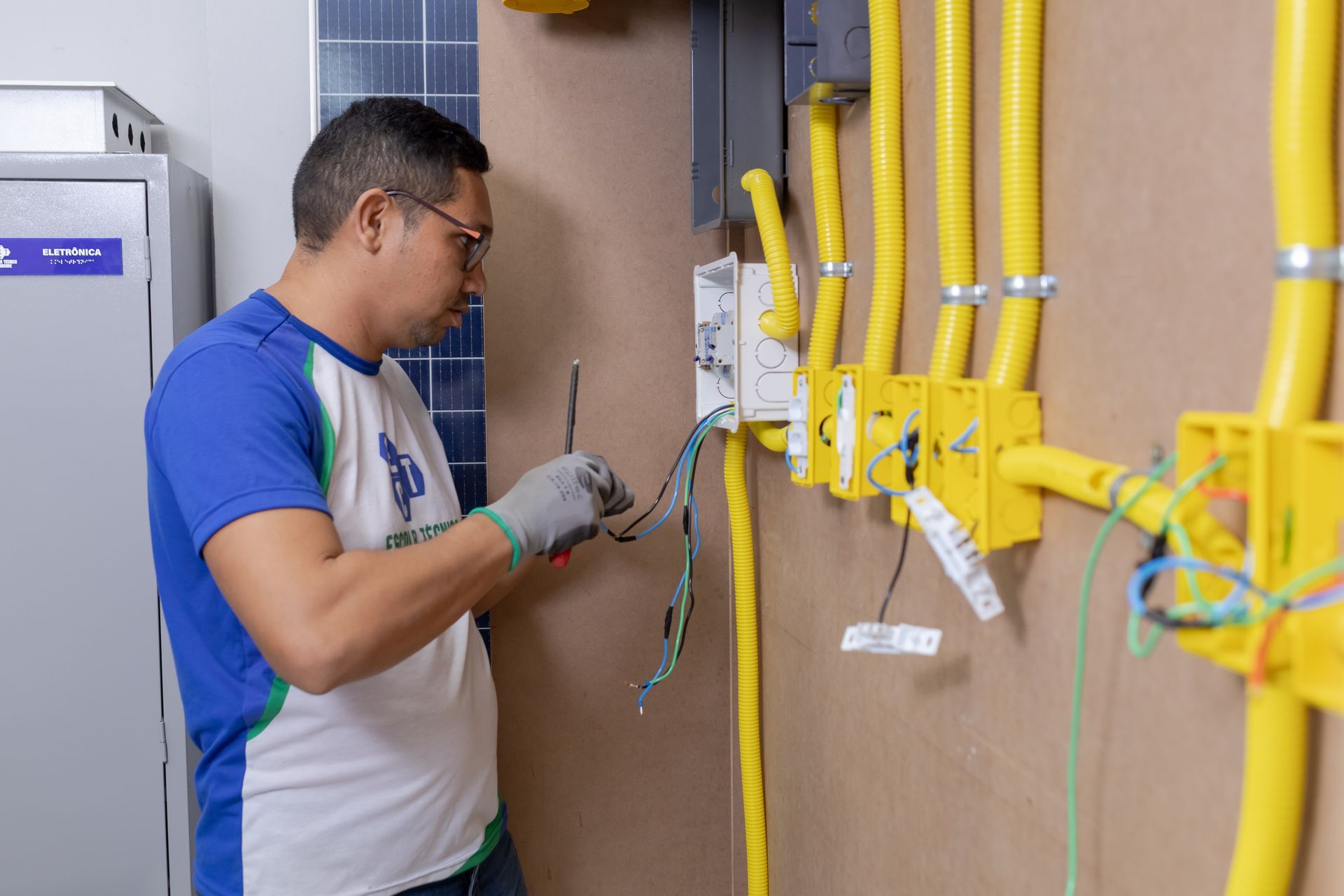 Nossos alunos desenvolvendo habilidades na prática, no curso de Eletricista Predial e Residencial